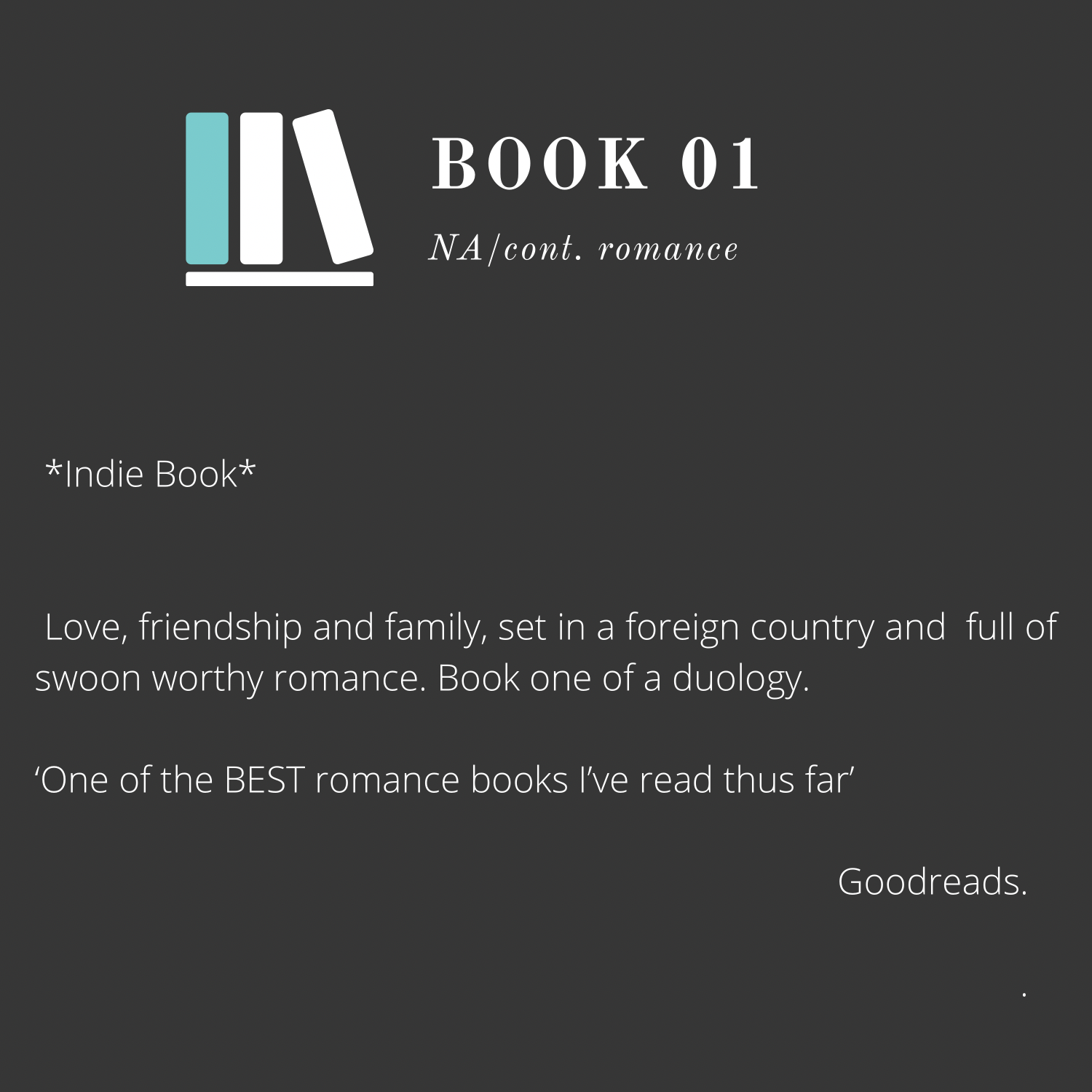 Love, friendship & family. Set in a foreign country and full of swoon worthy romance. Book one of a duology.