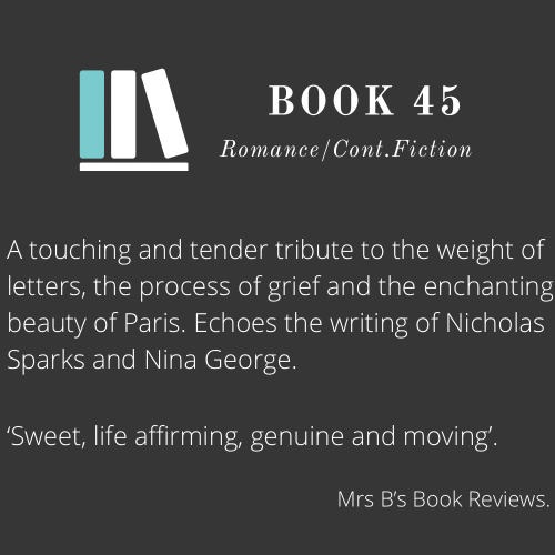 A touching and tender tribute to the weight of letters, the process of grief and the enchanting beauty of Paris. Echoes the writing of Nicholas Sparks and Nina George.