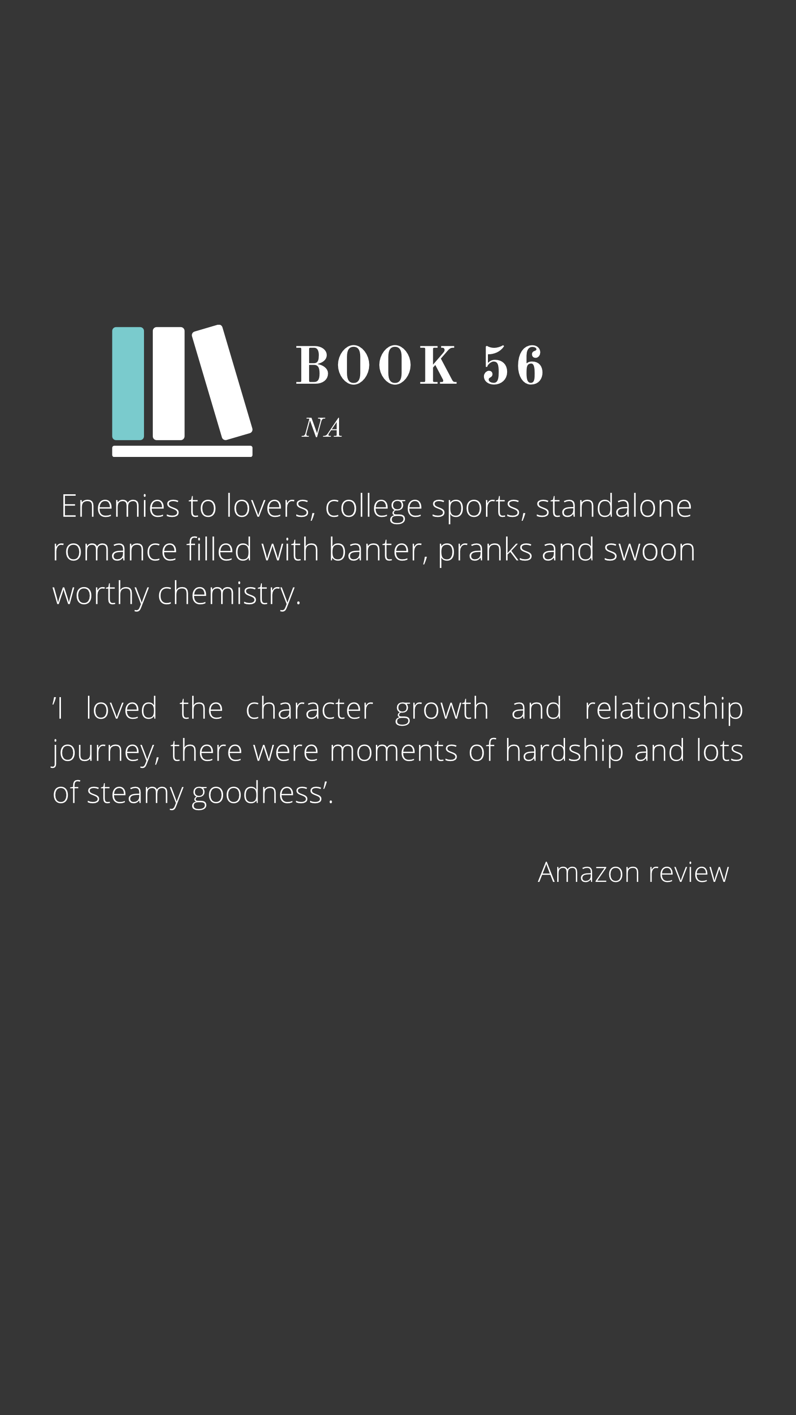 Enemies to lovers, college sports, standalone romance filled with banter, pranks and swoon worthy chemistry.