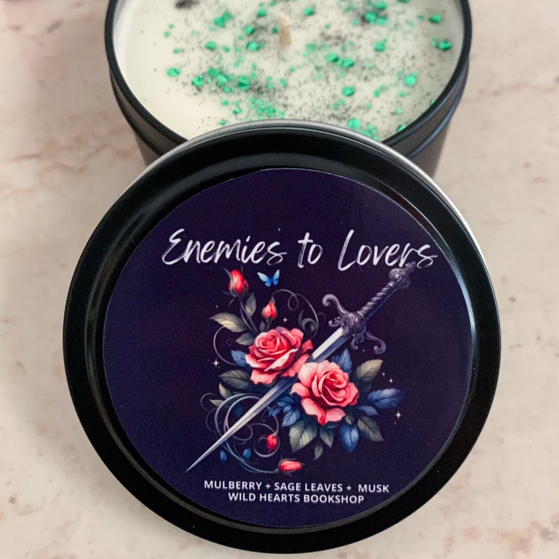 Wild Hearts Bookshop uses 100% soy wax in our candles with an eco friendly cotton wick, high quality fragrances and biodegradable glitter.
