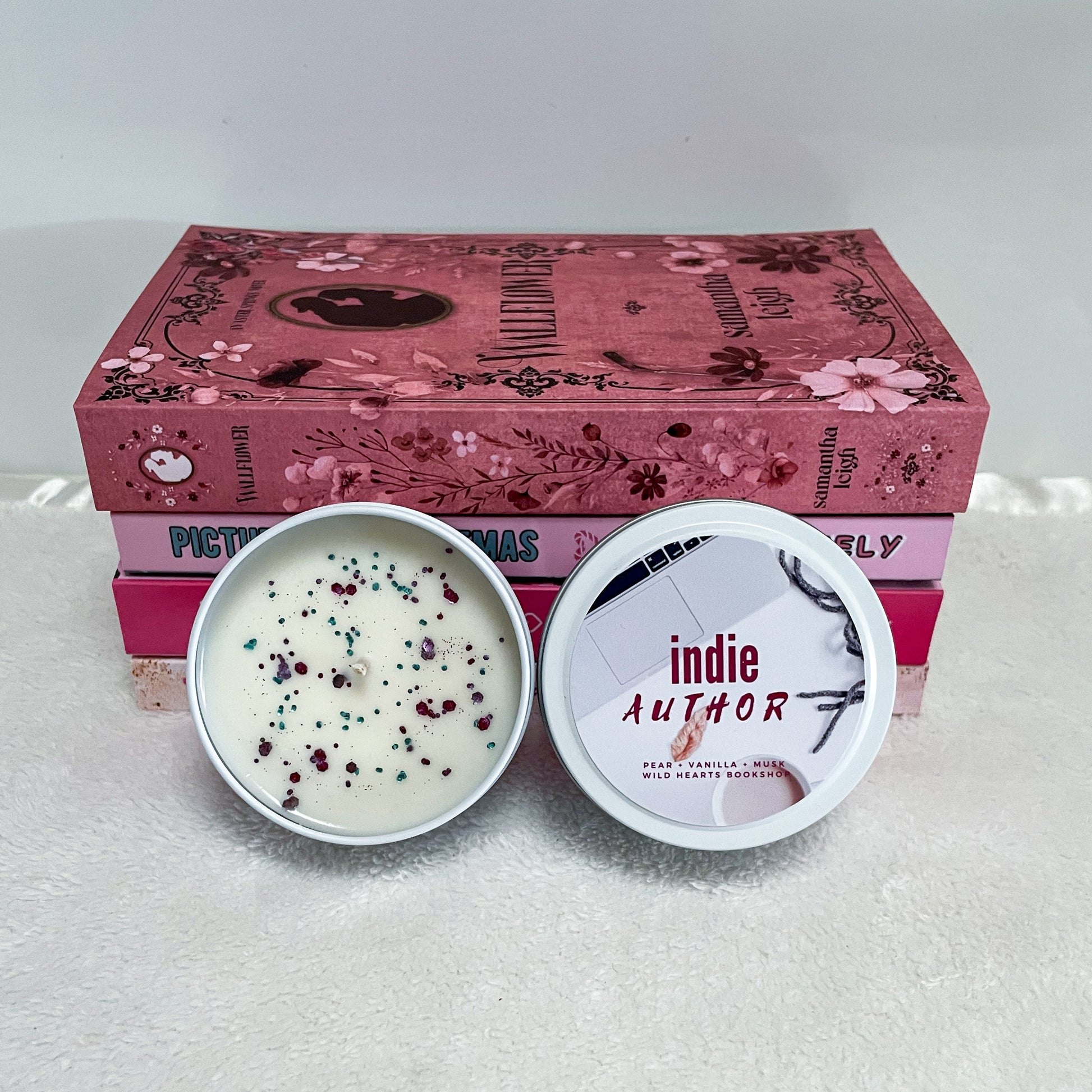 Wild Hearts Bookshop uses 100% soy wax in our candles with an eco friendly cotton wick, high quality fragrances and biodegradable glitter.