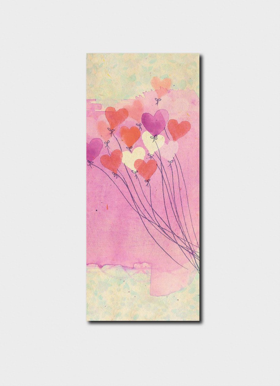 Love Hearts bookmark is printed on 320 gsm archival art paper and measures 60x150mm.