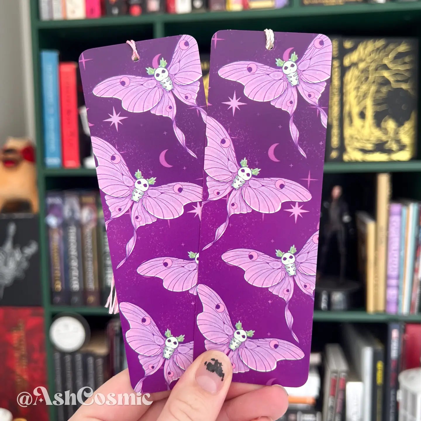 Introducing the enchanting bookmark adorned with adorable lil luna moths. Keep your place in the pages with a touch of whimsy and sophistication. Perfect for spellbooks, grimoires, or any tome that holds your mystical secrets. Elevate your reading experience with these bewitching bookmarks.