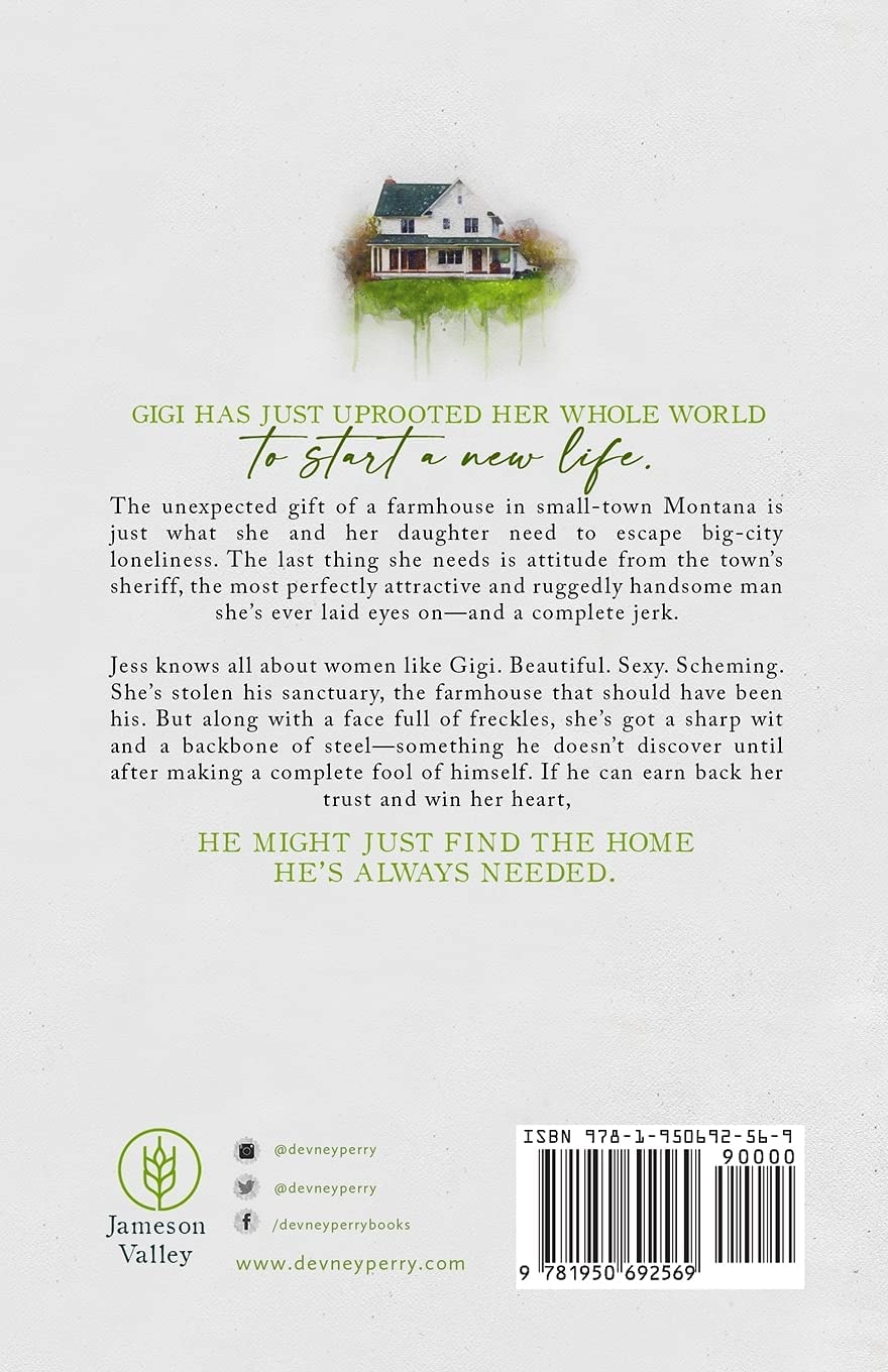 Gigi has just uprooted her whole world to start a new life. The unexpected gift of a farmhouse in small-town Montana is just what she and her daughter need to escape big-city loneliness. The last thing she needs is attitude from the town’s sheriff, the most perfectly attractive and ruggedly handsome man she’s ever laid eyes on—and a complete jerk.