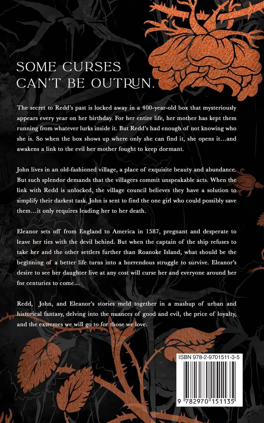 Eleanor sets off from England to America in 1587, pregnant and desperate to leave her ties with the devil behind. But when the captain of the ship refuses to take her and the other settlers further than Roanoke Island, what should be the beginning of a better life turns into a horrendous struggle to survive. Eleanor’s desire to see her daughter live at any cost will curse her and everyone around her for centuries to come…
